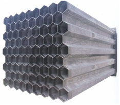 玻璃鋼陽極管是將摻有石墨粉的乙烯基樹脂膠液、碳纖維表面氈、玻璃纖維束、纖維布等按一定的鋪層排序在玻璃剛拉擠設(shè)備的牽引下、通過預(yù)加熱模具熱固成型的一種導(dǎo)電玻璃鋼型材,用于濕式靜電除塵系統(tǒng),是濕式除塵系統(tǒng)的核心部件之一。