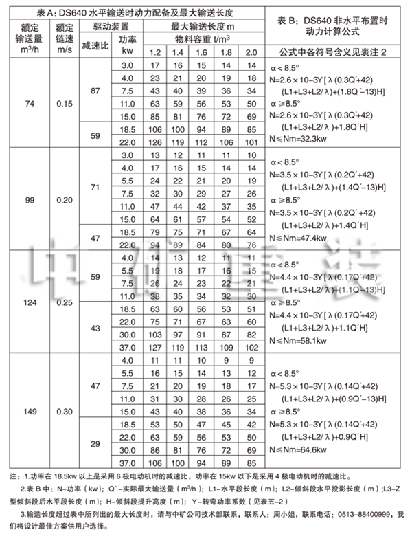 3、DS 640連續斗式輸送機動力配備表
