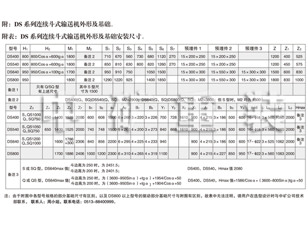 2、DS 540連續斗式輸送機動力配備表