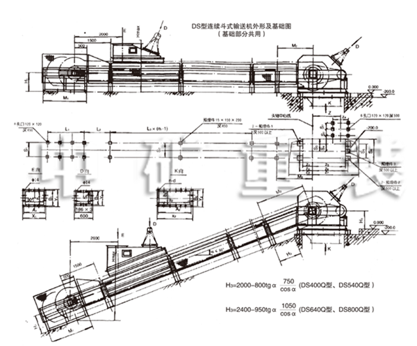 DS型連續式斗式輸送機外形及基礎圖(QS型)