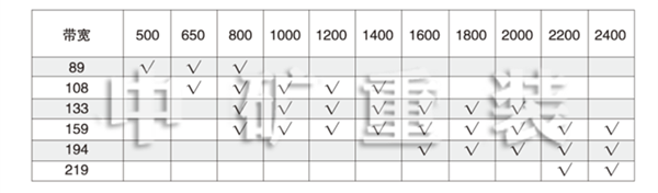 帶寬(mm) | 500 | 650 | 800 | 1000 | 1200 | 1400 |